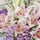 花 材6枝多頭粉百合,紫色、白色滿天星外圍