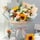 花 材3支粉玫瑰、3支香檳玫瑰、2支向日葵,搭配適量的桔梗、尤加利葉等