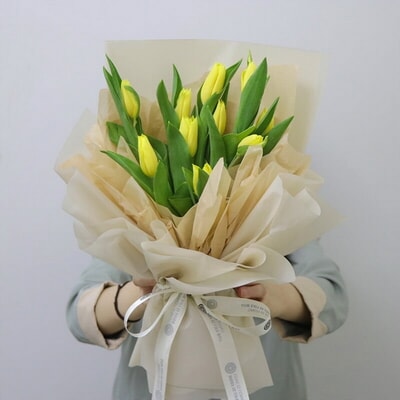 包 裝黃色系列的包裝,精美花結(jié),單面花束