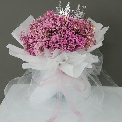 花 材粉色滿天星1.5扎、皇冠一個