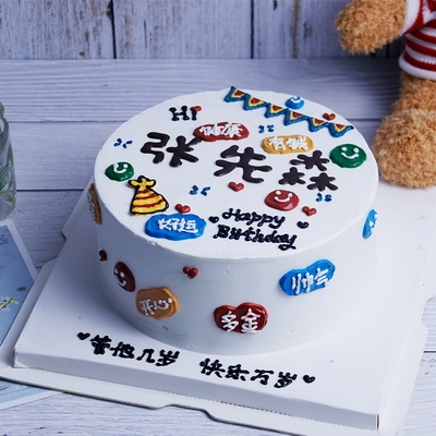 現(xiàn)烤蛋糕胚,新鮮水果夾心,優(yōu)質(zhì)奶油疊加,表層奶油手繪圖案+文字裝飾