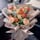 花 材11支香檳玫瑰,橙色泡泡,洋桔梗,洋甘菊,尤加利葉搭配