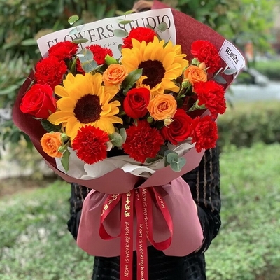 名 稱甜蜜的瞬間(9支紅康2支向日葵3支紅玫瑰)