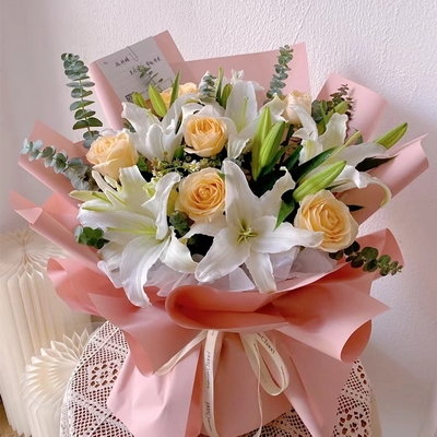 名 稱一米陽光(6支多頭白百合6支香檳玫瑰)