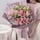 包 裝白色雪梨紙內(nèi)襯,紫色霧面紙多層韓式包裝,粉色精美花結(jié)束扎