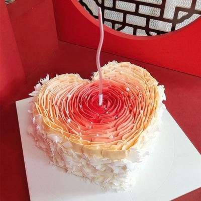 現(xiàn)烤蛋糕胚,中層新鮮奶油+應(yīng)季水果夾心,表層煙花蠟燭、奶油裱玫瑰花、珍珠糖裝飾,側(cè)面白色巧克力碎圍邊