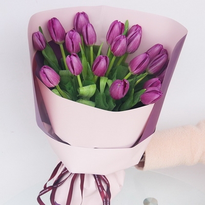 包 裝粉色+紫色雙面歐雅紙多層單面包裝,紅色字母蝴蝶結束扎