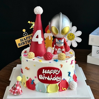 圓形鮮奶蛋糕,新鮮水果夾層,奧特曼、卡通配件等搭配