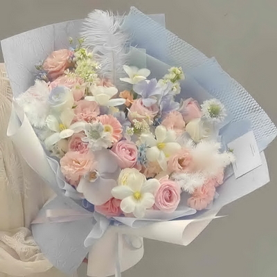 玫瑰混搭粉藍(lán)色系花束